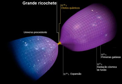 Segundo essa proposição, o universo primordial era grande e rarefeito, com matéria distribuída de modo irregular. Muito antes dos 14 bilhões de anos relativos ao momento em que se acredita que tenha ocorrido o Big Bang, esse universo teria começado a se contrair tão fortemente que poderia deixar de existir. Mas, por ter se tornado extremamente pequeno, ele passou a ser regido por efeitos quânticos que fizeram com que parasse de diminuir e sofresse um grande ricochete – esse sim há 14 bilhões de anos – que o levou a uma fase de expansão.